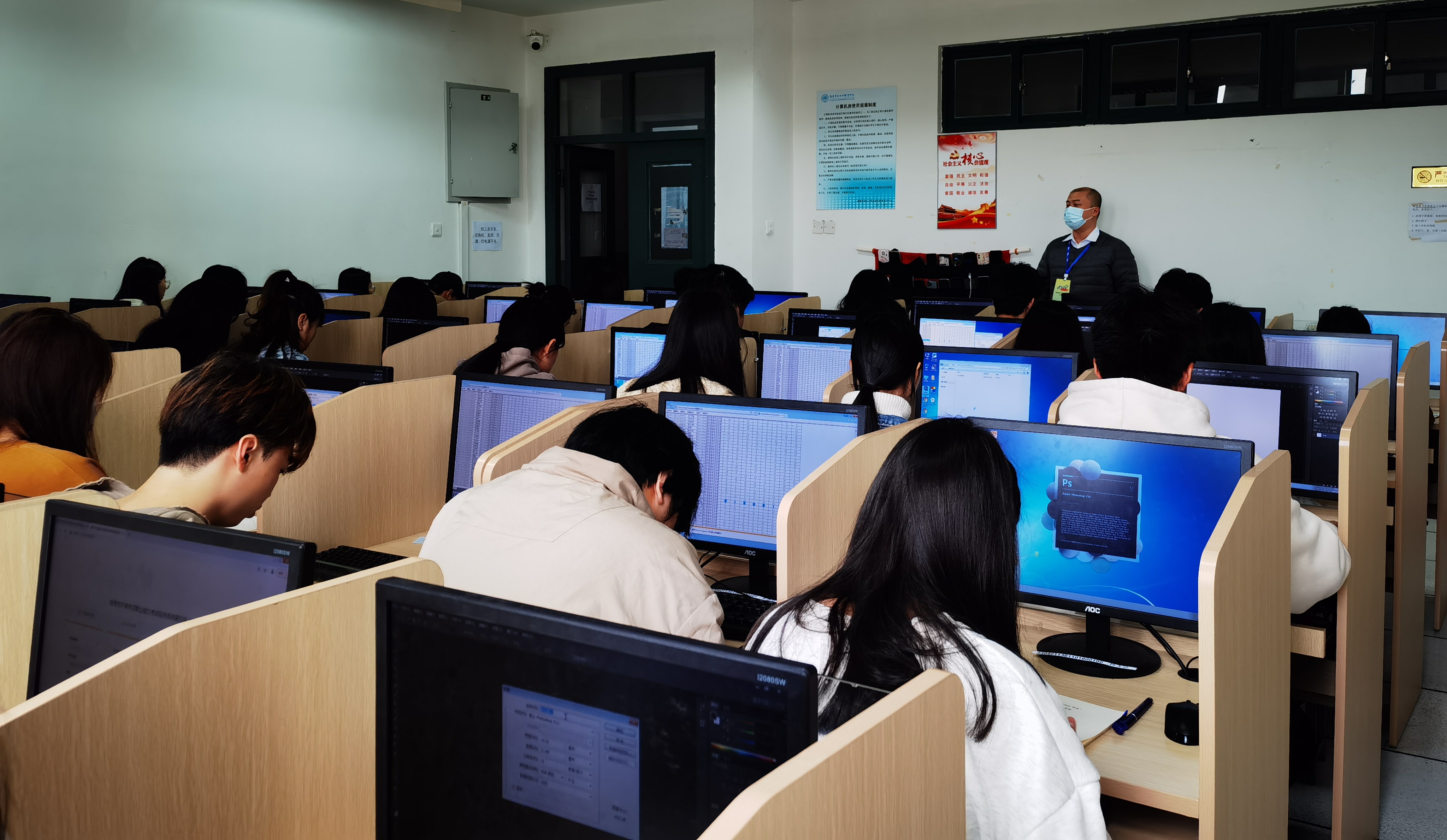 2023年4月1日,我院在实训楼1-403、1-406A顺利开展了2场(上午、下午)的“Photoshop图形图像专业处理”专项能力鉴定考试,共计考生219人。顺利完成了鼠绘模拟、网页元素、特效创意等八个项目的考核。