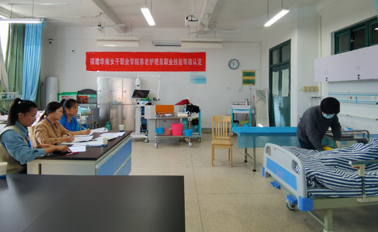2023年11月26日,我院在教学楼3-102、实训楼1-302、1-207顺利开展了养老护理员(三级、四级、五级)职业技能等级认定考试,共计75名福清金色职业培训学校、福建中华技校的学员参加了本次考试。顺利完成了对老年人居室进行紫外线消毒、为老年人进行鼻导管给氧、对初级养老院进行实践指导等项目的考核。