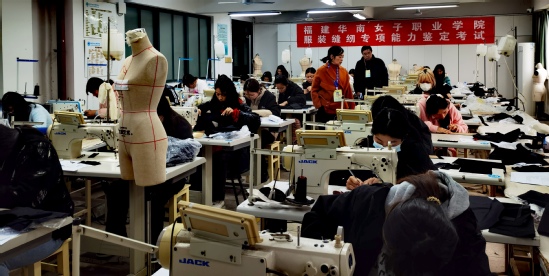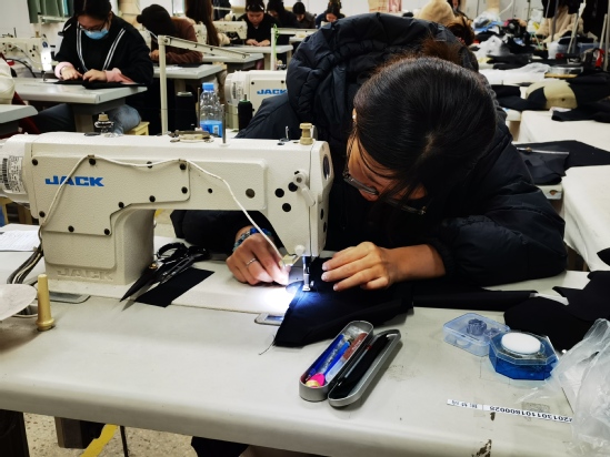 2023年12月20日,在我院实训楼2-006、2-007顺利开展“服装缝纫”专项能力鉴定考试,共计考生62人。通过工艺、缝制、整烫等方面的评价考核,考生们最终顺利完成了一件男夹克。