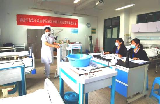 2023年5月20日,在教学楼3-103、实训楼1-302、1-207顺利开展了养老护理员(三级)职业技能等级认定考试,共计66名护理专业的在校生参加了本次考试。顺利完成了对老年人居室进行紫外线消毒、对烫伤的老年人进行初步处理、帮助压力性尿失禁老年人进行功能锻炼等项目的考核。