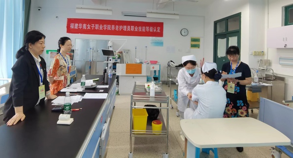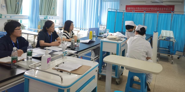 2024年5月19日,在实训楼1-302前和1-302后顺利开展了养老护理员高级职业技能等级认定考试,共计70名护理专业的在校生参加了本次考试。顺利完成了对老年人居室进行紫外线消毒、对肘部摔伤的老年人进行初步处理、识别老年人抑郁的情绪及原因等项目的考核。