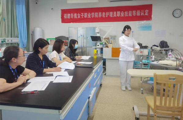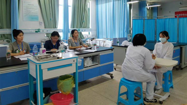 2024年5月18日,在实训楼1-302前和1-302后顺利开展了养老护理员高级职业技能等级认定考试,共计79名护理专业的在校生参加了本次考试。顺利完成了对老年人居室进行紫外线消毒、对手掌烫伤的老年人进行初步处理、识别老年人抑郁的情绪及原因等项目的考核。