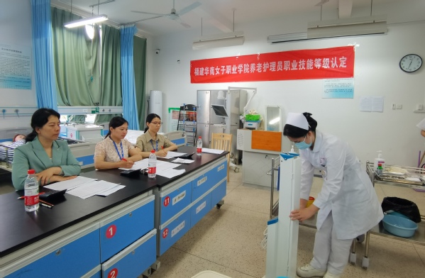 2024年5月26日,在实训楼1-302前、1-308后、1-207顺利开展了养老护理员高级职业技能等级认定考试,共计62名护理专业的在校生和20名福清金色参加了本次考试。顺利完成了对老年人居室进行紫外线消毒、对肘部摔伤的老年人进行初步处理、识别老年人抑郁的情绪及原因、现场对特殊老人进行高蛋白喂食、现场对特殊老人进行更换粪袋等项目的考核。
