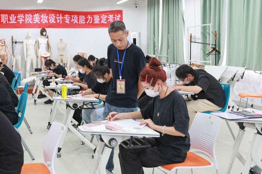 2024年10月20日,我校在实训楼2-204、2-207、2-208顺利开展了美妆设计专项能力考试,共计考生86人。顺利完成了中式新娘妆、设计并彩绘对饱满性感的嘴唇等项目的考核。本次考核结合教学实际融入学科素养、美学思维和创新意识,考察学生的知识掌握,促进学生的职业技能能力提高,素养提升,通过考核促进成长。