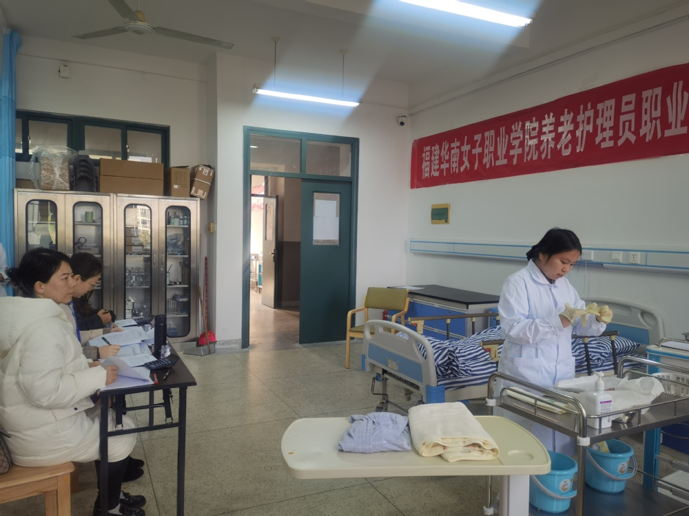 2024年12月22日,我校在实训楼1-302、1-306顺利开展了养老护理员中级职业技能等级认定,共计72名福建财茂工业技术学校护理专业的在校生参加了本次考试。全体考生顺利完成了协助不能自理老年人口服用药、戴(脱)无菌手套、指导偏瘫老年人进行穿脱开襟上衣训练、促进老年人睡眠的健康教育措施等项目的考核。
