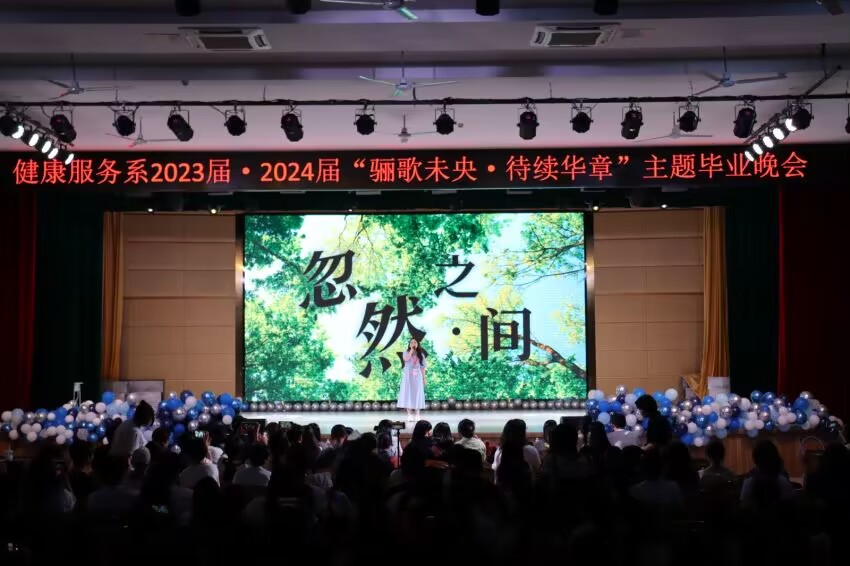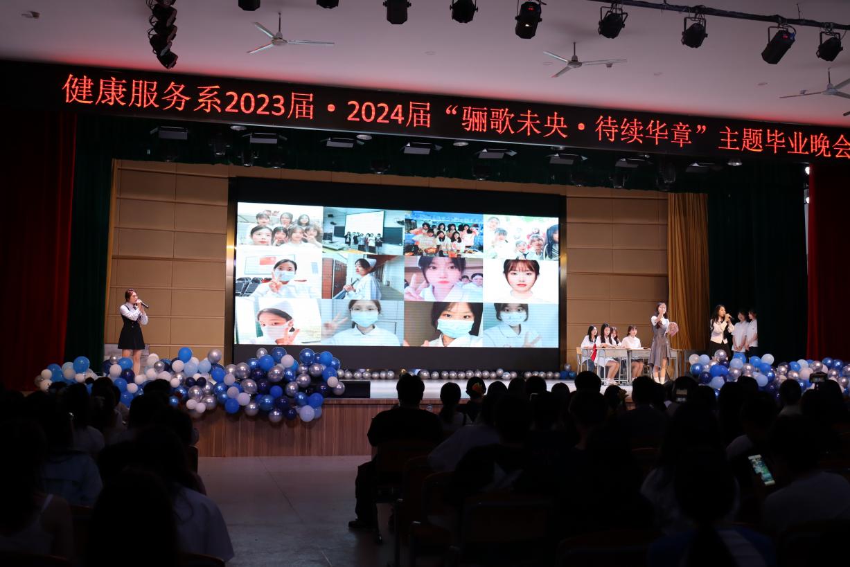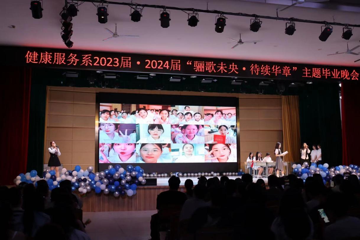一晃两三年,匆匆又夏天。健康服务系2023·2024届“骊歌未央,待续华章”主题的毕业晚会在礼堂举行,全系师生欢聚一堂,共同度过了一个难忘的夜晚。