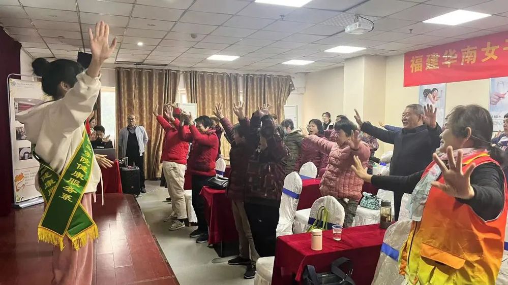 接着,学生们进行现场教学,指导爷爷奶奶们学习中华传统功法——八段锦。八段锦起源于北宋,是一套具有祛病健体的养生功法。随着一招一式的练习,老人们不仅感受到了传统养生功法的独特魅力,更在运动中舒展了筋骨,感受到健康与快乐。
