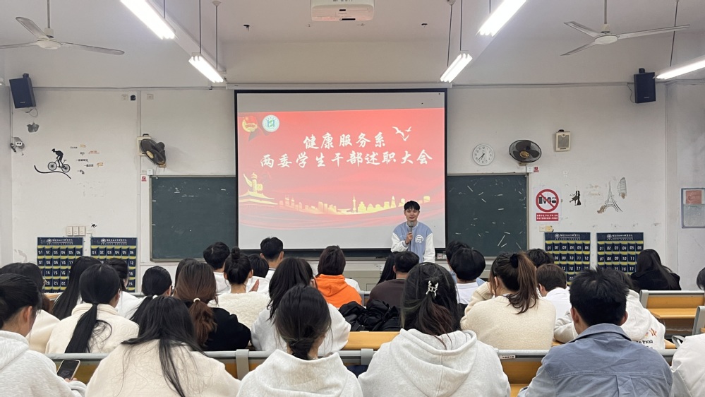 为进一步加强队伍建设,促进健康服务系团总支学生委员会工作的高质量发展,健康服务系团总支学生委员会工作述职大会于2024年1月2日20点在4-203教室顺利召开,本次大会健康服务系团总支书记、全体辅导员、学生委员会全体学生干部出席本次会议。
