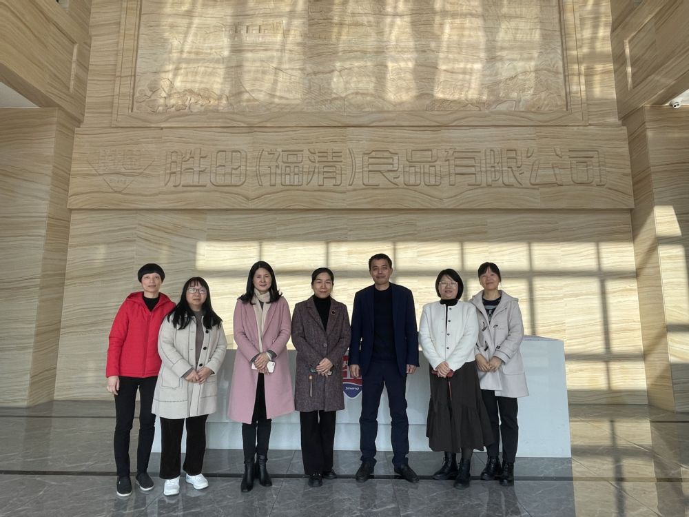 为进一步推进我院“访企拓岗促就业”专项行动,促进校企深度合作,拓宽食品检验检测技术专业毕业生的就业渠道,促进毕业生高质量就业2023年12月29日上午,我院党委副书记吴岚葭带领健康服务系主任罗玉芳、党总支书记王秋香、专业主任罗建玲、系部教师陈小梅、黄惠梅等前往胜田(福清)食品有限公司进行参访。