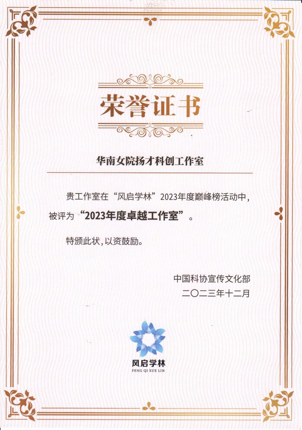 我院扬才科创工作室荣获中国科学技术协会2023年度“活跃工作室”称号。