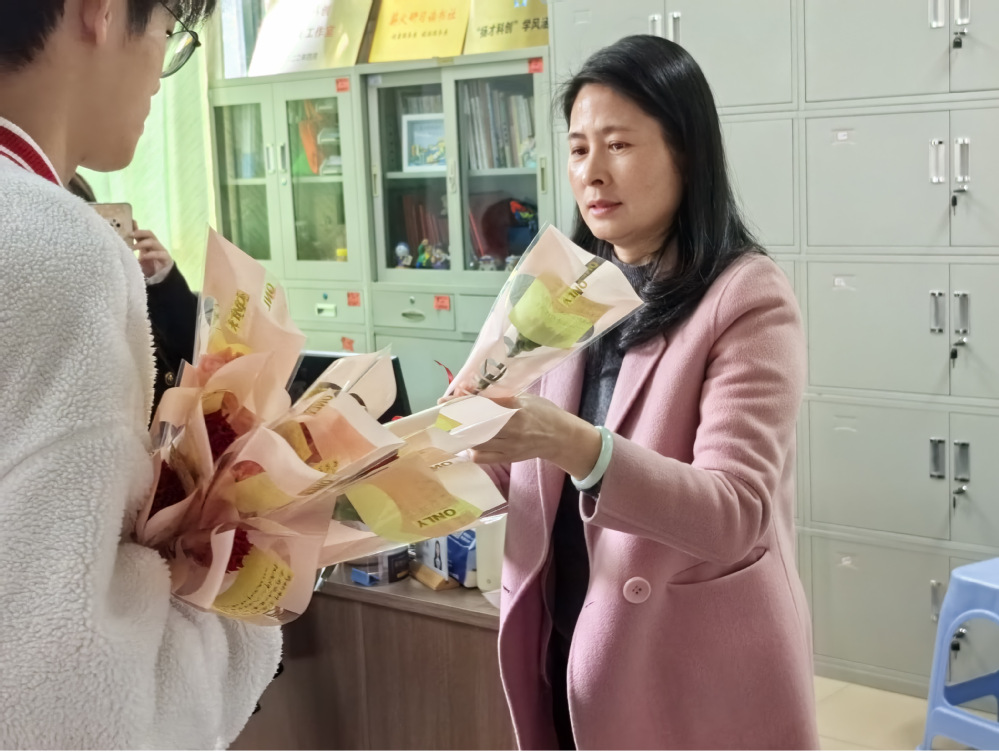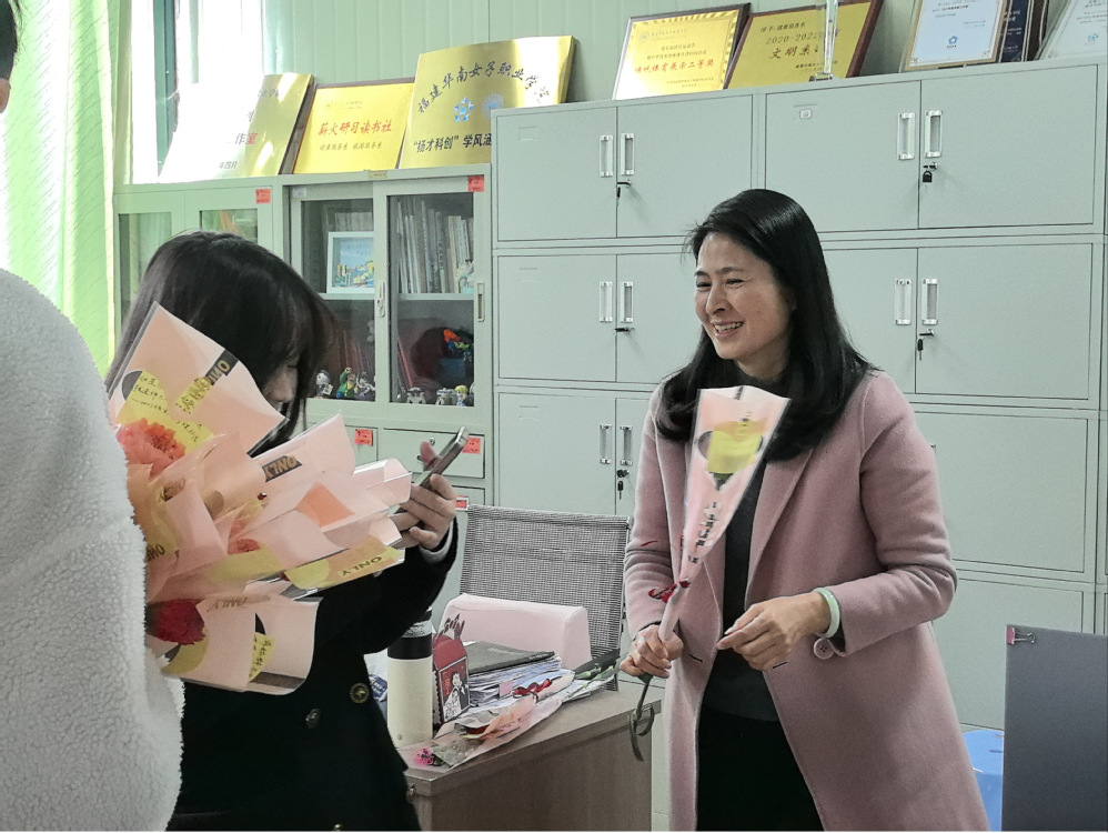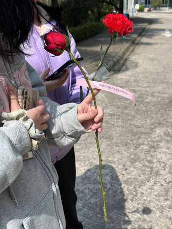 同学们为所有系部老师送上鲜花,致敬“她”力量!