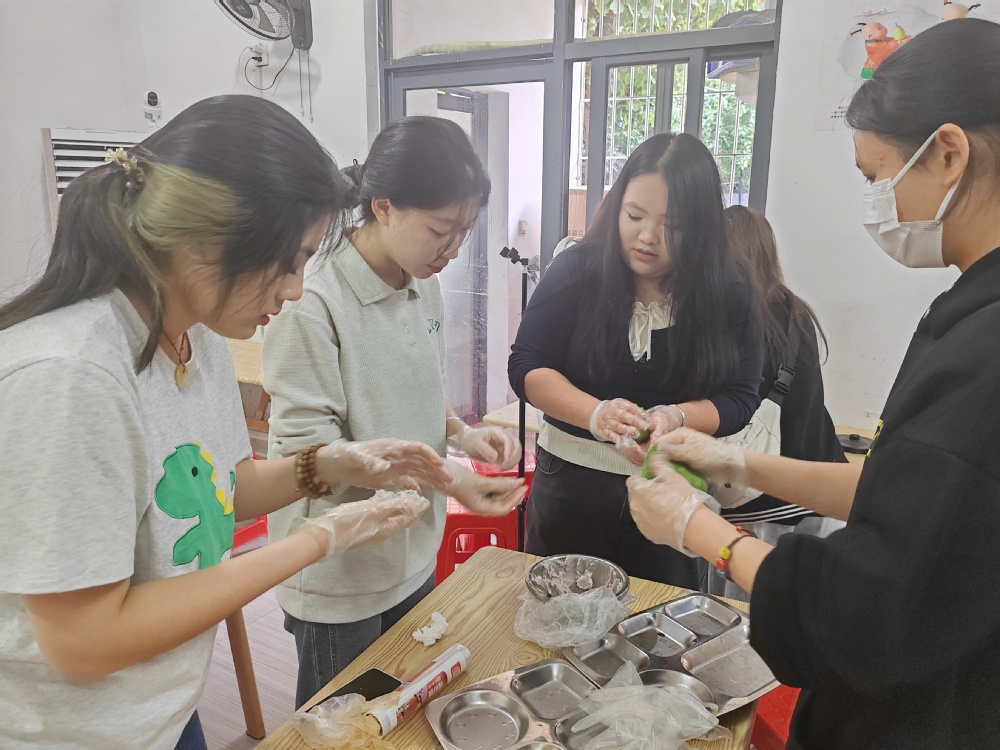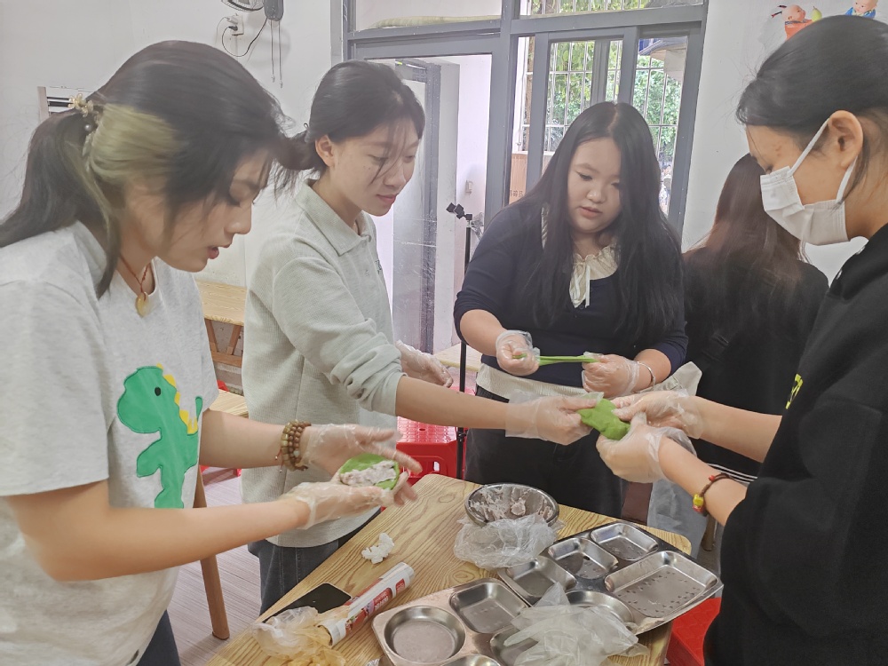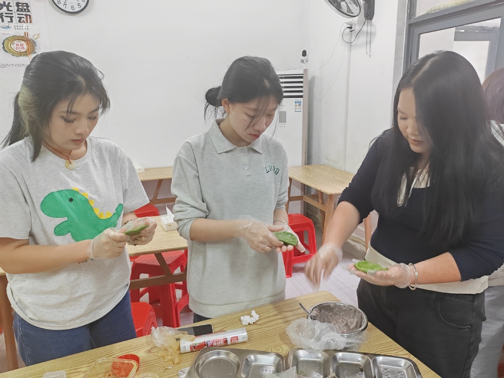 活动伊始,系部教师为学生们详细讲解了青团的制作方法和背后的文化内涵。青团作为清明节的传统食品,不仅美味可口,更寄托着对先人的思念和对春天的美好期许。在系部教师的示范下,同学们认真学习每一个制作步骤,从揉面、包馅到成型,每一环节都充满了对传统文化的敬畏和热爱。期间,大家分组进行青团制作实践,互相协作,共同完成了一个个精美的青团。在制作过程中,学生们不仅锻炼了动手能力,更深刻体会到了劳动的艰辛和乐趣。大家纷纷表示,通过亲手制作青团,不仅学会了一项传统技艺,更感受到了传统文化的魅力和价值。