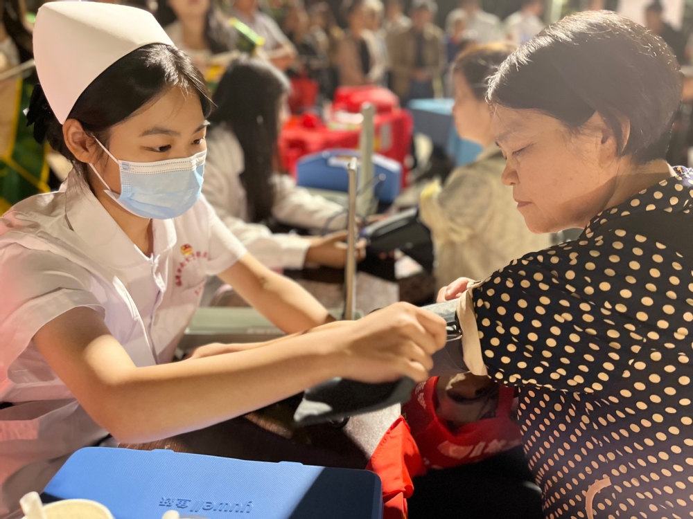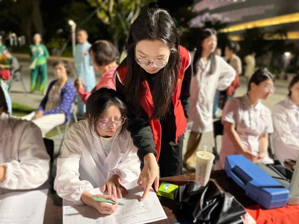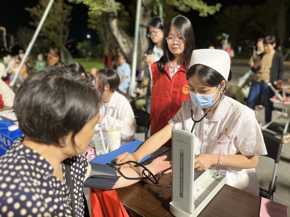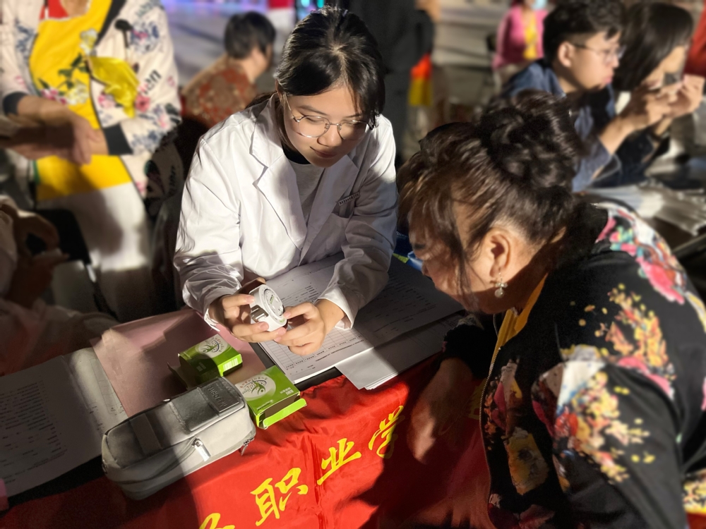 本次活动,健康服务系依托专业优势,结合师生专业特长,开展了健康体检、营养咨询、敬老爱老宣传倡议等多个具有专业特色的活动。活动现场热闹非凡且秩序井然,前来参加活动的群众络绎不绝。师生们一边细致认真地为老人们检查,一边亲切热情地与老人们交流,了解他们的身体状况和日常生活习惯,解答关于健康的各种疑问,提供有针对性的疾病预防建议,提高老人们的健康意识。老人们感受到关心与温暖,脸上绽放出灿烂的笑容。