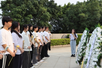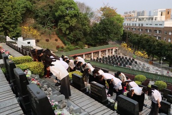 师生们本次还到了余宝笙校长的墓前,敬献鲜花,纷纷诉说着对老院长的思念,带队老师在余宝笙校长墓前对本次参与活动的同学们讲述宝笙院长当初复办“新华南”的艰苦历程,给同学们上了一堂“生动的校史课”,并带领同学们做出庄严承诺,将把新华南精神将继续在一代代华南人中继承弘扬。