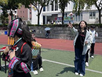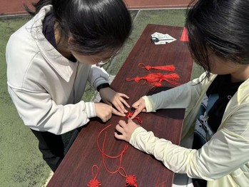 活动融知识性与趣味性为一体,采取竞答和游戏的互动形式,分为三大主题板块:“民族知识知多少” “高山族--背篓投球” “同心千千结”。在“民族知识知多少”竞答环节中,以人文历史、风土人情等内容,让学生学习历史,增长知识,厚植爱国情怀与文化自信;在“高山族--背篓投球”双人挑战中,同学们热情参与,默契配合,体验民族传统游戏乐趣,感受独特风土人情;在“同心千千结”中国结制作区,红色绳线在同学们的指尖翻转、交织,一个个精美的同心结制作而成,同学们也从中领悟“团结同心”的深刻寓意。