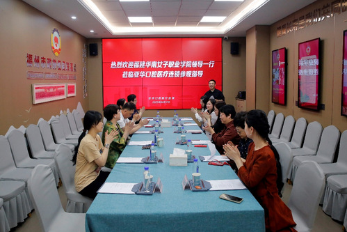 在校企交流座谈会上,卓秀芳董事长对我校任建红校长一行的到来表示热烈欢迎,卓建贞副总经理详细介绍了公司的企业文化、经营理念、医疗创新及发展理念等,还通过视频详细介绍了该公司在社会公益方面的实践成果。任建红校长高度评价福州亚华医疗连锁机构是一家有目标、有定位、有创新、有担当、有作为的企业,表示公司的企业文化与华南女院的办学理念有异曲同工之处,希望今后在人才培养、志愿服务、实习就业等方面深度融合,合作共赢。卓秀芳董事长表示,今后愿与我校深入合作,培养学生学以致用、学有所成,共同推动产教融合与人才共育。双方均认为在当今“大健康”的行业发展背景下,更需要培养一专多能的综合性人才,并就人才培养和岗位需求进行了深入交流。