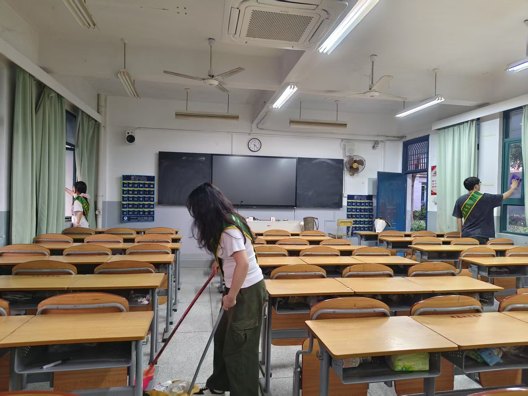 清扫结束后,学生干部组成安全检查小组,逐一排查责任教室的门窗锁闭、电源切断及多媒体设备关闭情况,确保无遗漏、无隐患。切实保障节假日期间校园财产安全。活动将劳动教育与安全教育相结合,强化了学生的责任意识与主人翁精神。