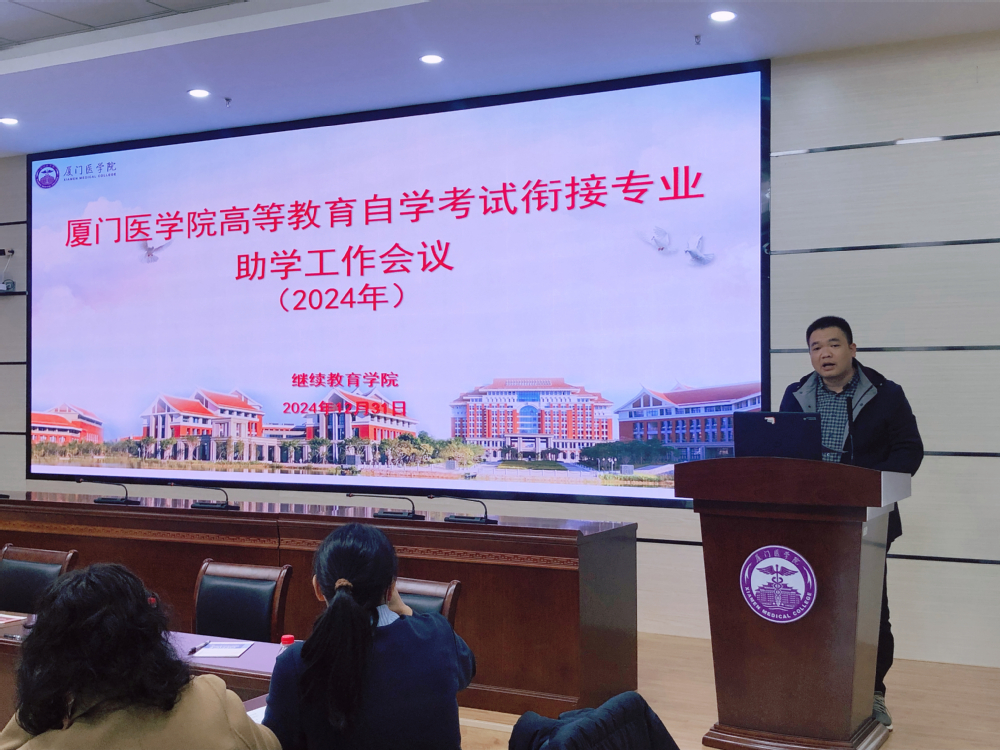 2024年12月31日,我校继续教育学院院长刘钐赶赴厦门参加厦门医学院高等教育自学考试衔接专业助学工作会议。会议围绕自学考试衔接专业的相关政策、教学管理及学生服务等方面展开深入探讨。