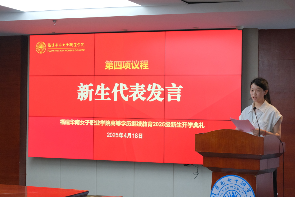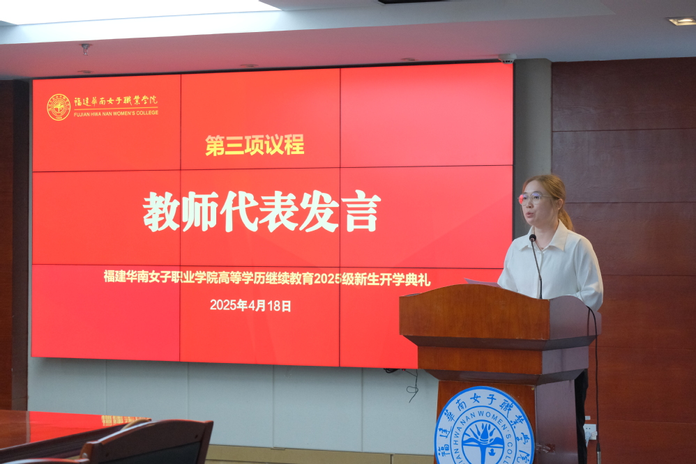 4月18日下午,福建华南女子职业学院高等学历继续教育2025级新生开学典礼举行。副校长张秋蘋、继续教育学院院长刘钐、教师代表及全体新生齐聚一堂,以“青春作序新程启 梦想为帆学海行”为主题,共同开启终身学习的新篇章。