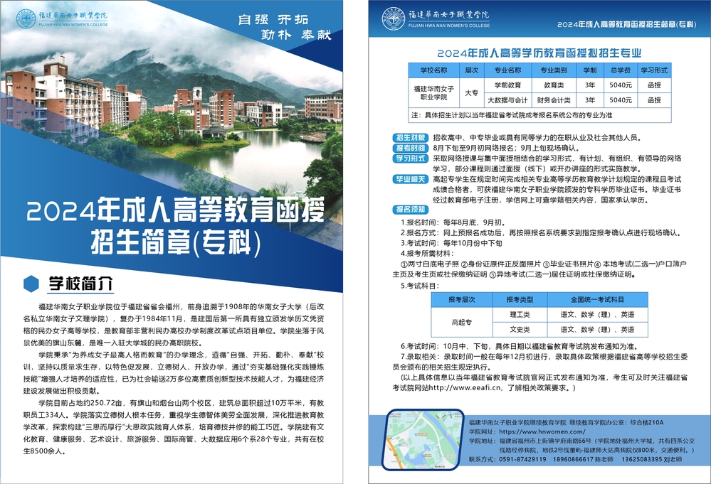 福建华南女子职业学院2024年成人高等学历继续教育函数招生简章(专科)