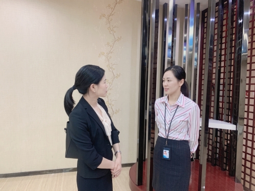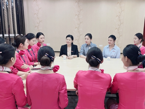 在与实习学生们交谈后,老师们与元翔(福州)国际航空港有限公司的人力经理、用人部门负责人进行交流,沟通华南女院空乘专业学生的优势及需要提升的地方以及未来深入校企合作的模式和方案,为进一步提升教学的针对性和有效性,培养更适合企业发展的人才提供依据。
