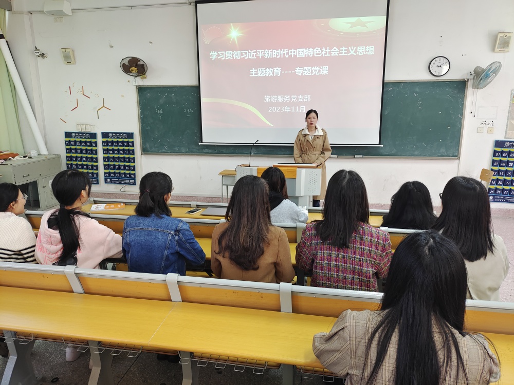 为深入学习贯彻习近平新时代中国特色社会主义思想和党的二十大精神,扎实推进学习贯彻习近平新时代中国特色社会主义思想主题教育的开展,提高支部党员的政治素养和党性修养。2023年11月21日下午,旅游服务党支部书记张菲菲为全体支部同志开展“学思想、谈感悟,砥砺奋进前行”为主题的专题党课。