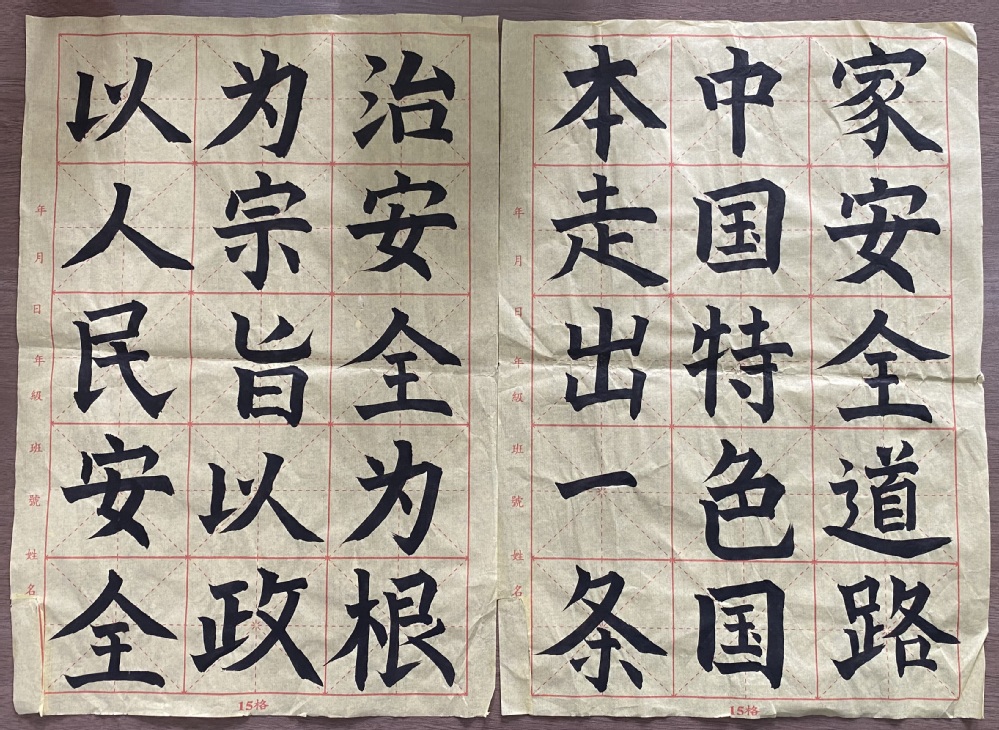 一幅幅遒劲有力、浩然正气的书法作品跃然纸上,展现了我系学子书法风采,展现了中华优秀传统文化的魅力,又传递了国家安全教育的深刻内涵。