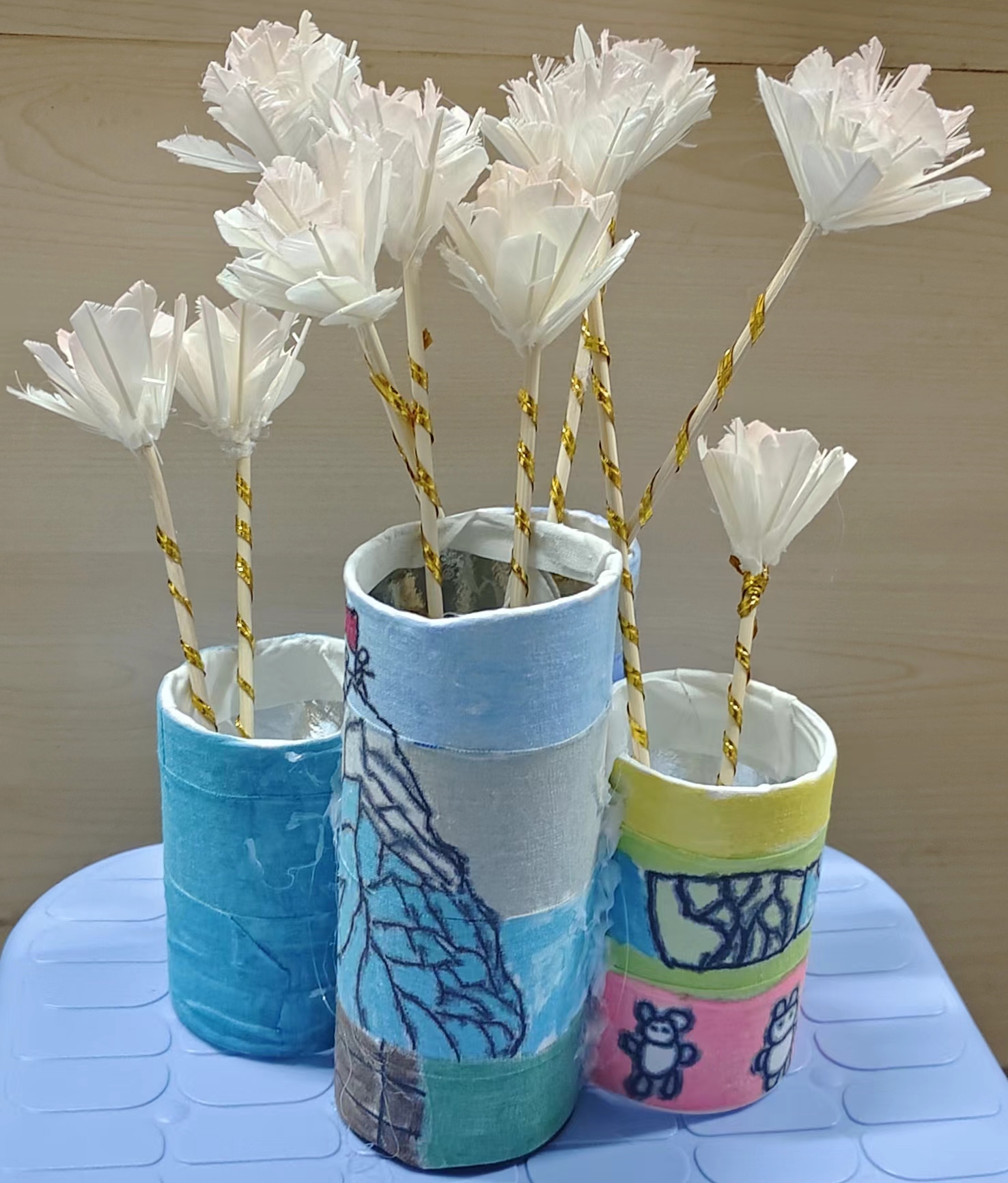 在旧物改造比赛中,同学们开动脑筋,发挥独特的想象力,将身边闲置的或没用的物品“变废为宝,制作成一些小巧而精美的物品,如:纸巾盒、小夜灯等。