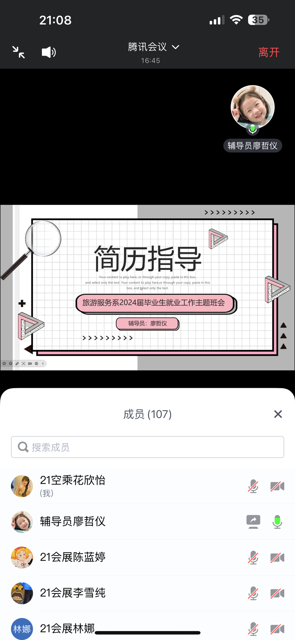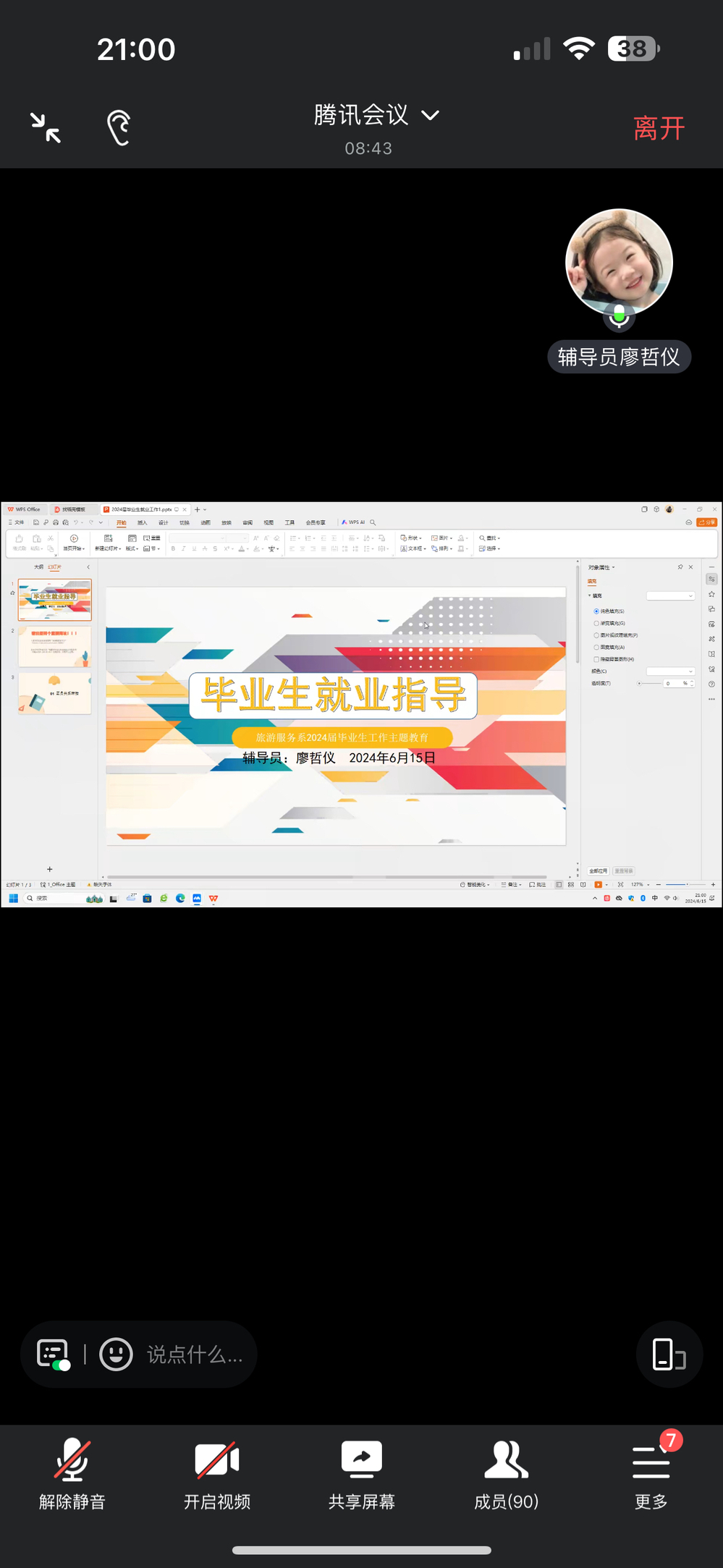 本次班会通过腾讯会议平台举行,旨在为毕业生提供实时的就业市场分析、求职准备指导以及互动答疑的机会。会上,辅导员首先详细分析了当前旅游服务行业的就业市场形势,让毕业生们对就业前景有了更清晰的了解。