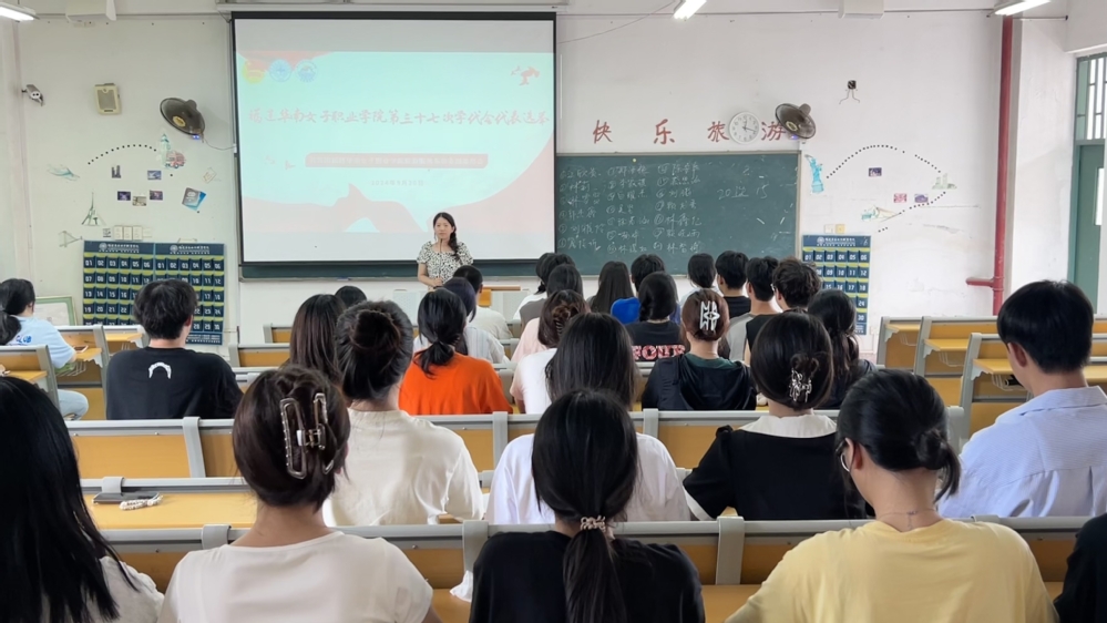 为深化贯彻习近平新时代中国特色社会主义思想,落实团中央、教育部及全国学联的相关要求,福建华南女子职业学院旅游服务系团总支于2024年9月20日在福万楼3-301成功举办了第三十七次学生代表大会代表候选人选举活动。此次活动得到了系团总支书记廖哲仪老师、组织委员卢艺菲老师、辅导员张玉鑫老师以及第九届学生会干部和学生代表的积极参与。