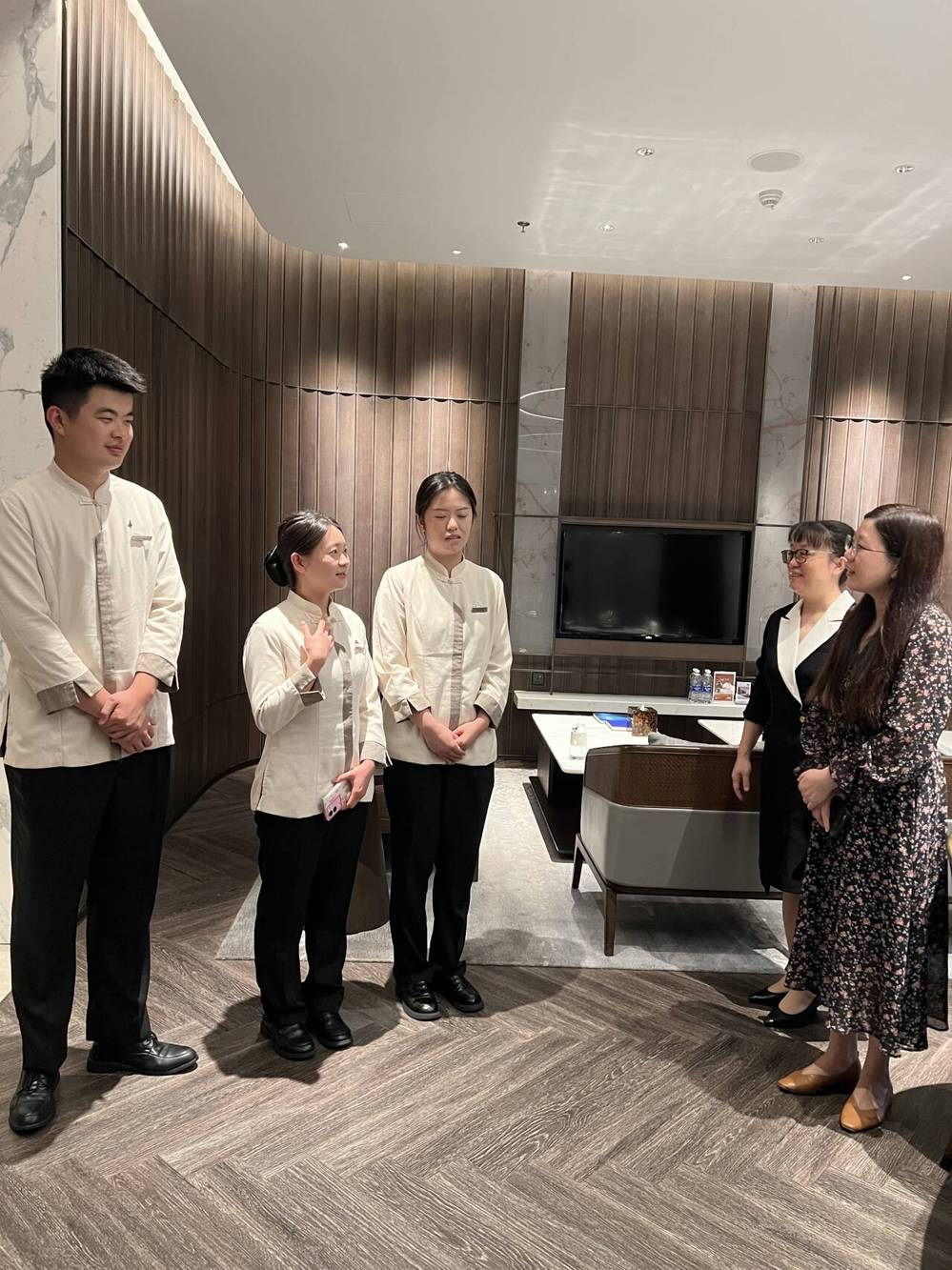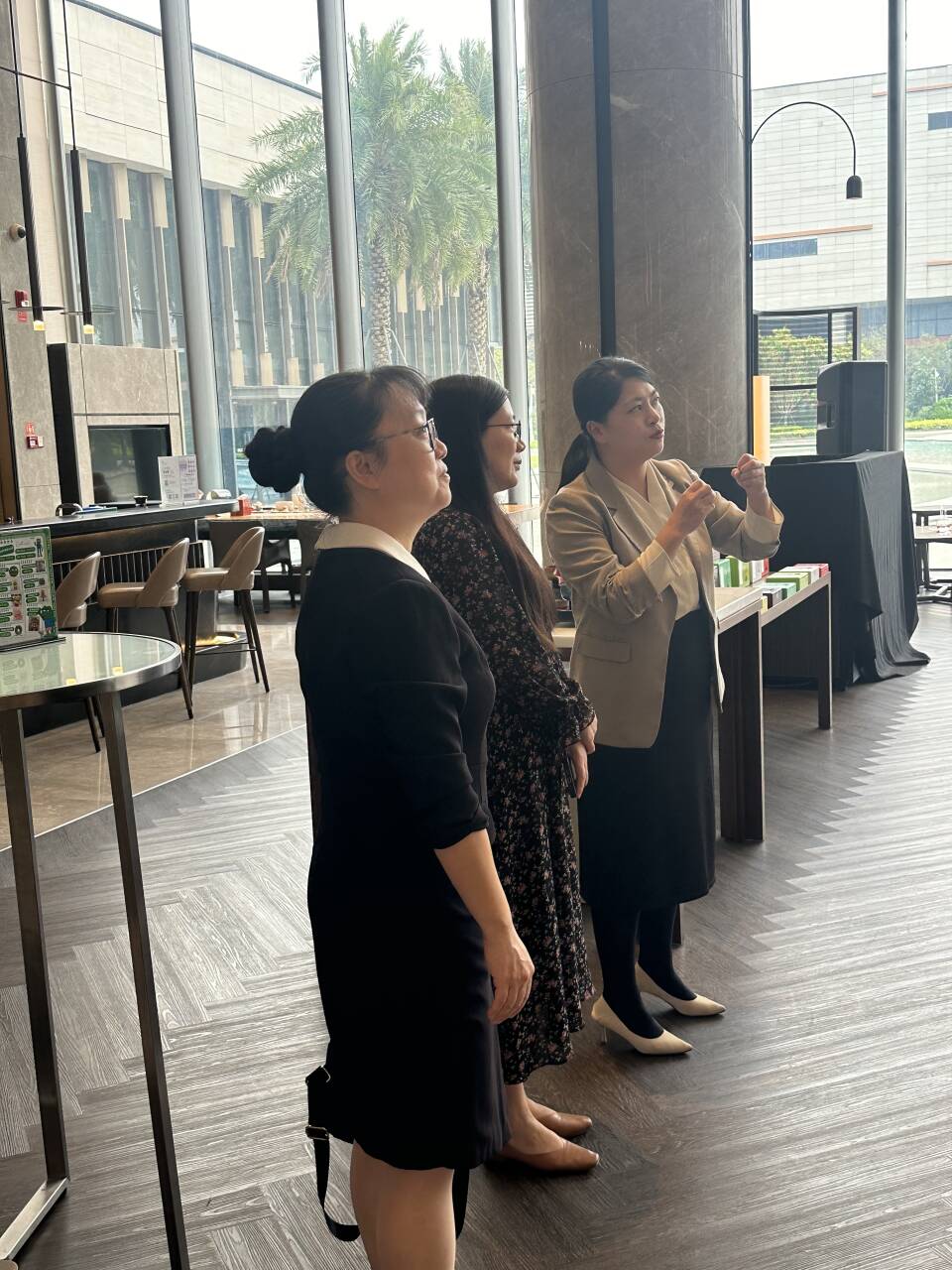 在酒店人力资源部李丽总监和张冰冰经理的精心安排下,教师们首先参观了酒店的各个营业部门,从豪华客房到精致餐厅,从忙碌的宴会厅到静谧的茶室。李丽总监详细介绍了酒店的发展历程、企业文化、服务理念以及实习生在各部门的实践情况。他们表示,万豪酒店一直致力于为实习生提供一个良好的学习和实践平台,让他们在真实的职业环境中锻炼成长。