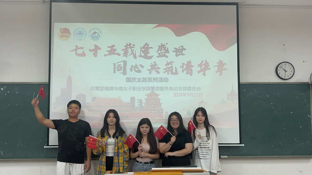 在金秋送爽、丹桂飘香的美好时节,我们迎来了新中国成立75周年的辉煌时刻。旅游服务系于2024年9月28日举办“七十五载逢盛世,同心共筑谱华章”国庆系列活动,向祖国母亲献上最诚挚的祝福。