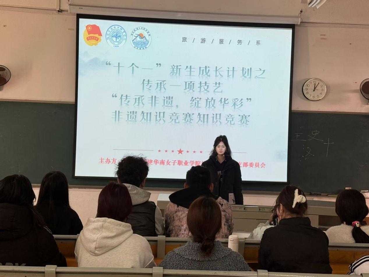 为弘扬中国优秀传统文化,增强文化自信,推动非遗文化的传承与创新,旅游服务系精心策划的“十个一”新生成长计划暨“一站式”学生社区活动——“传承非遗,绽放华彩”知识竞赛在福万楼3-302圆满举行。此次活动为师生们搭建了一个深入了解非遗技艺文化的平台,让大家在知识的碰撞中,更直观地领略非遗技艺的独特魅力。