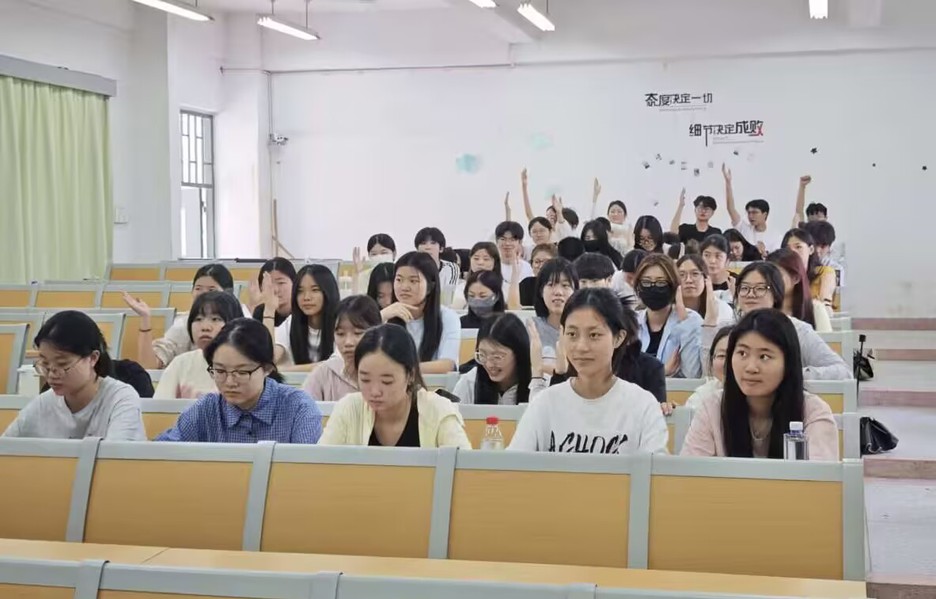 在竞赛环节,同学们利用手机端认真完成学习通上的竞赛。而后抢答环节将活动推向高潮,各参赛同学反应迅速、争先恐后,展现出扎实的知识储备,台下观众也热情高涨,不时为选手们加油助威,掌声、喝彩声此起彼伏。