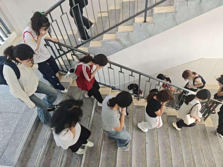中期,实地演练正式开始。随着消防警报声响起,在专人的组织引导下,学生们按照培训所学的逃生路线,用湿毛巾捂住口鼻,弯腰低姿,迅速、有序地从教学楼内撤离。整个过程紧张而不慌乱,各环节衔接紧密,同时安排人员全程拍照,记录演练实况。