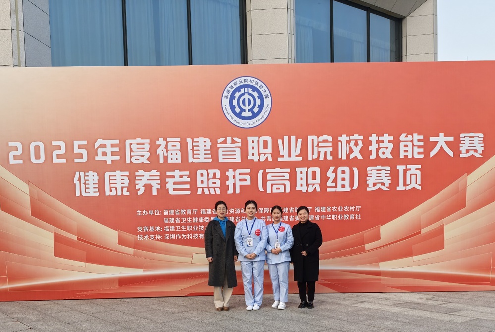 2025年3月8日-9日,由福建省教育厅主办,福建卫生职业技术学院承办的2025年福建省职业院校技能大赛健康养老照护赛项(高职组),共有21所院校、42名选手参加此赛项。在与医卫类院校同台竞技的前提下,我校智慧健康养老服务与管理专业张敏老师、俞榕清老师指导的2023级胡煜琳同学、李颖同学,分别获得二等奖和三等奖。