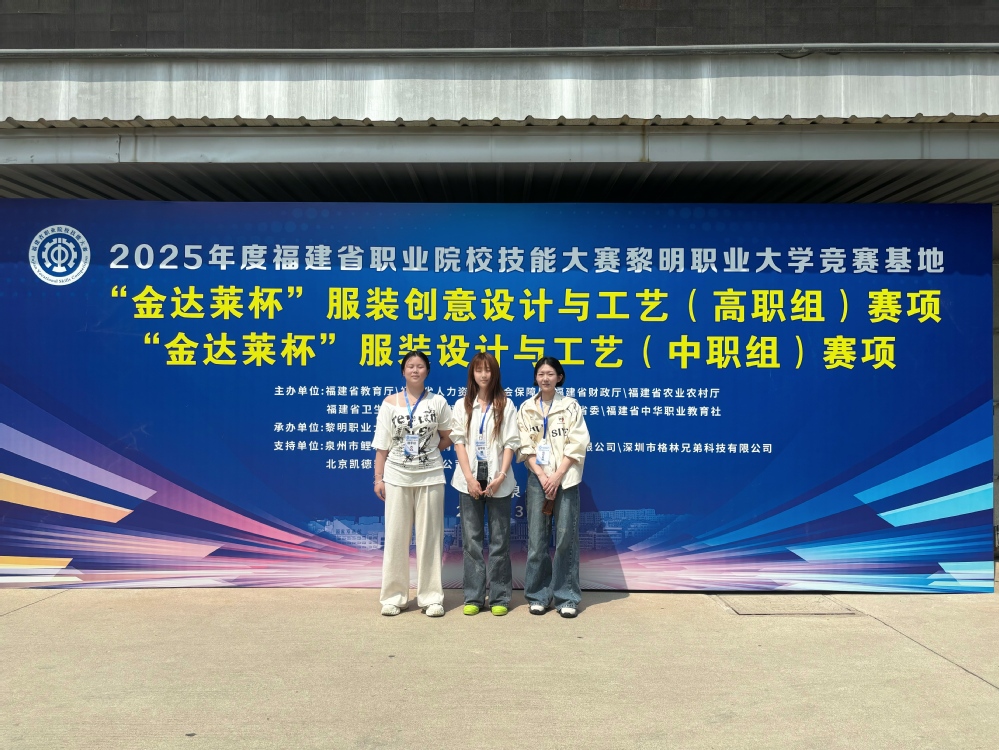 2025年3月24日-25日,由福建省教育厅主办,福建黎明职业大学承办的福建省职业院校技能大赛高职组服装创意设计与工艺赛项大赛圆满落幕。此次比赛共25支队伍,我校服装与服饰设计专业庄舒婕、杨慧婷两位老师共同指导的2024级五年专学生林晶颖、2024级三年专学生沈奕真,最终荣获团体三等奖。