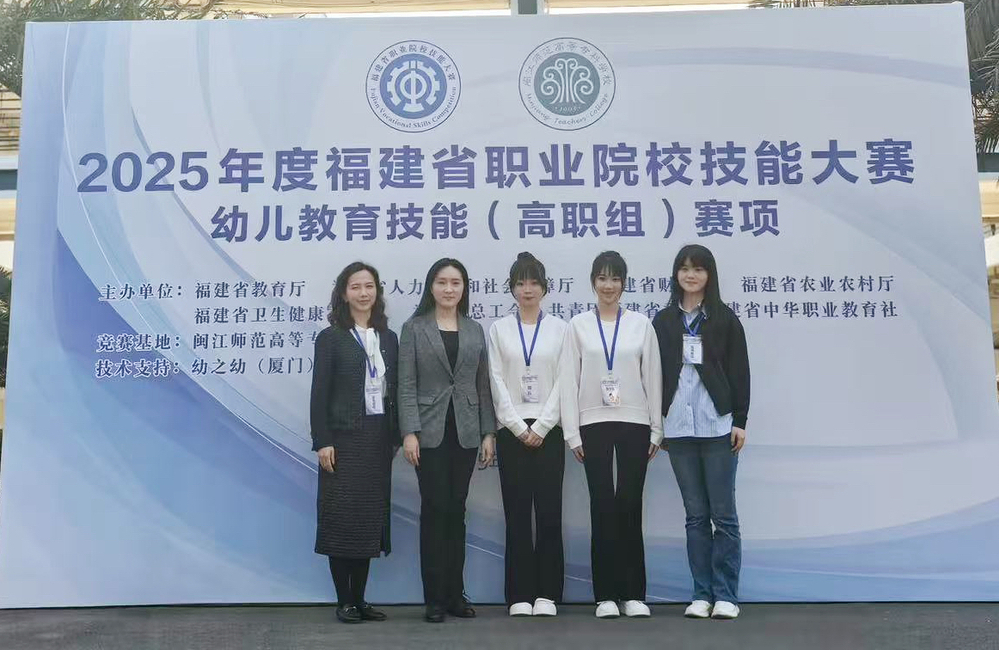 2025年3月22日-23日,由福建省教育厅主办,闽江师范高等专科学校承办的2025年福建省职业院校技能大赛(高职组)幼儿教育技能赛项圆满落幕。我校文化教育系学前教育专业陈江南老师、郭陈旖老师指导的2022级学前教育专业周子慕同学、陈佳琳同学在26支参赛队伍中排名第四,荣获该赛项二等奖第一名。