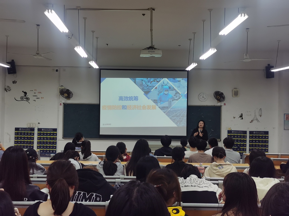 在讲授中,黄磊晶副院长从“疫情防控措施科学有效经济社会发展稳中向好坚定夺取双胜利的信心三个方面将理论与实践相结合,以时间为主线,梳理了2020年以来疫情防控和经济发展情况,对比解读了中外疫情政策与发展态势,并以大量的事实、案例和数据,从多个方面说明了我国疫情防控和经济社会发展取得的喜人成果。同学们深刻认识到,面对世界疫情和百年变局交织叠加的形势,中国走过了一段极不平凡的历程为全球疫情防控和经济发展做出了积极贡献。黄副院长的课堂既有理论深度,又有实践深度,既语重心长,又充满情怀,贴近学校生活、贴近学生实际通过课堂讲授,同学们对二十大报告有了更加深入的了解。最后,黄副院长温馨提示大家要注意加强锻炼,保持身心健康切实为自己和身边的同学筑校园疫情防线。