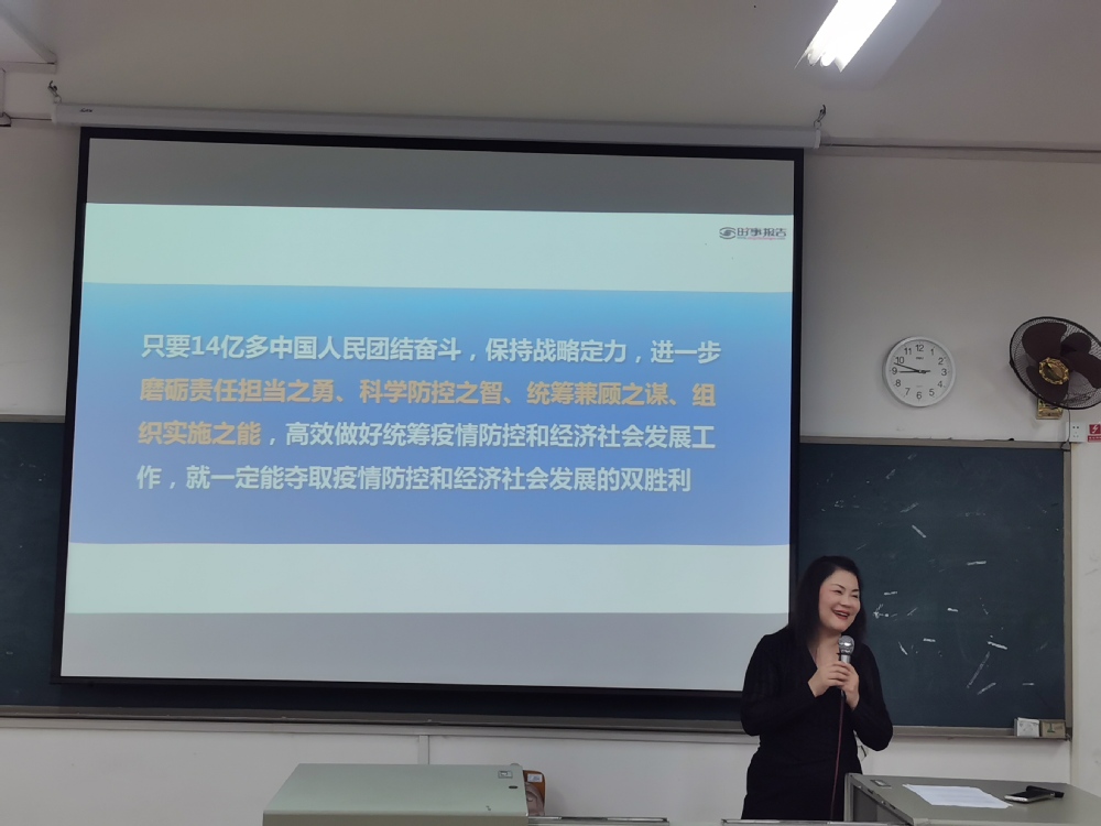 为帮助同学深刻理解二十大报告中“统筹疫情防控和经济发展取得重大积极成果”1128日,院黄磊晶副院长走进课堂,向2022学前教育和美术教育新生讲授了一堂以“高效统筹疫情防控和经济社会发展”为主题的“形势与政策”课
