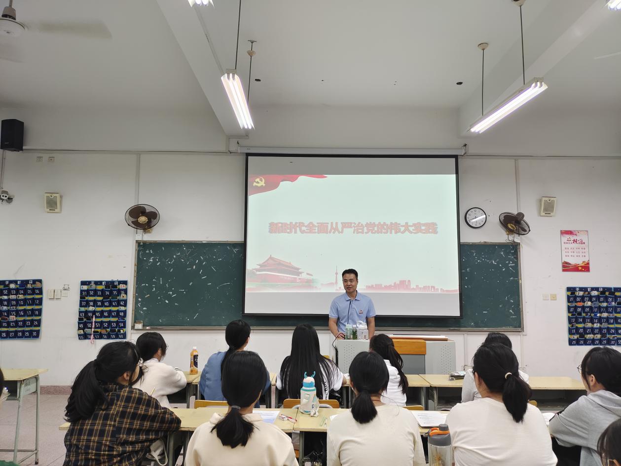 李廷旺书记结合昨天刚刚召开的二十大会议,结合党的十八大以来全面从严治党的举措,围绕“党要管党 坚持严的主基调不动摇”、“从严治党 产生了全方位深层次影响”以及“坚持不懈 全面从严治党向纵深推进”三个方面生动地讲述了我党全面从严治党取得的成效。结合党的二十大会议精神,彰显我党的先进性、纯洁性以及坚强的革命性。结合学生专业特色、结合自身的学习工作经历,与同学们积极互动,使课堂严肃又不失活泼。