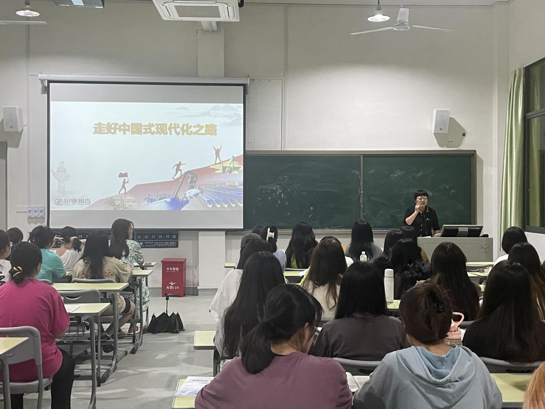 为深入贯彻落实立德树人根本任务,规范开展“形势与政策”课教学,419日,学院党委副书记、院长任建红以“走好中国式现代化之路”为主题,为2022服装与服饰设计专业的学生上了一堂精彩的形势与政策课。