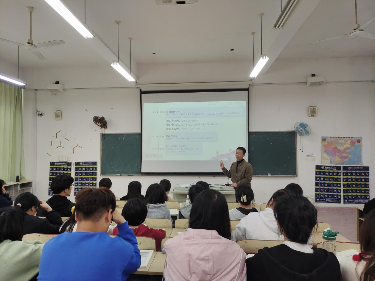 李廷旺书记结合前不久召开的全国两会,结合党的十八大以来在理论和实践上的创新突破,我们党成功推进和拓展了中国式现代化,围绕“接续奋斗,追求千年梦想”、“立足国情,开辟全新道路”以及“凝心聚力,推进复兴伟业”三个方面生动地讲述了我党接续奋斗、推进社会主义现代化建设取得的成效。结合党的二十大会议精神和全国两会精神,彰显我党的先进性、纯洁性以及坚强的革命性;中国式现代化推动中华民族迎来了从站起来、富起来到强起来的伟大飞跃,实现中华民族伟大复兴进入了不可逆转的历史进程。结合学生的专业要求和特色、结合自身的学习工作经历,与同学们积极互动,使课堂严肃又不失活泼。