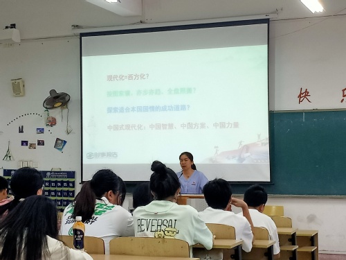 课上,吴岚葭副书记以“走好中国式现代化之路”为主题,为2022级艺术设计专业、空中乘务专业学生授课。她从“持续奋斗,追求千年梦想”、“立足国情,开辟全新道路”、“凝心聚力,推进复兴伟业”3个篇章,引导学生结合专业背景与青年实际,深刻领悟中国式现代化是不同于西方现代化模式的新模式新图景,是一种全新的人类文明形态,为人类社会现代化提供新选择、新智慧、新方案,帮助学生认识“中国式现代化”所具有的重大意义。课后,同学们纷纷表示,吴副书记的讲授启迪思想、温润心灵、催人奋进,使大家对“中国式现代化”有了更加深刻的认识。