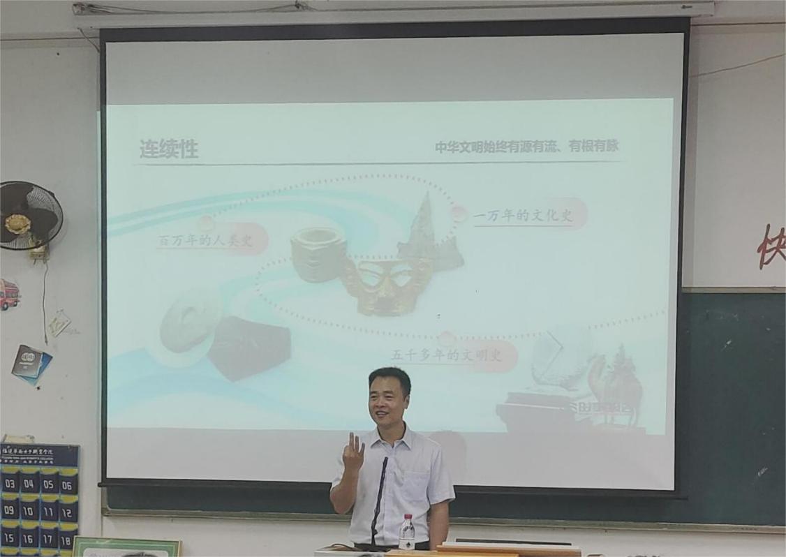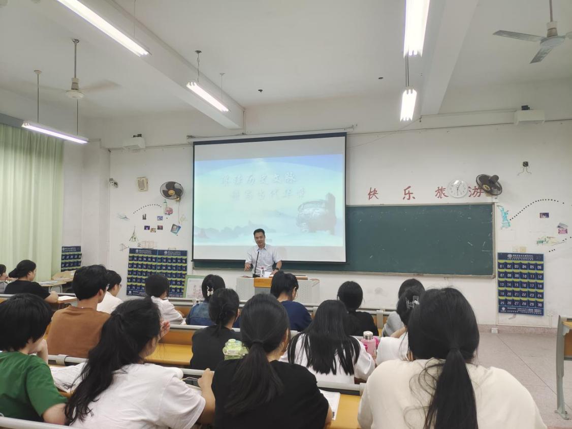 李廷旺书记结合源远流长、博大精深的中国文化,围绕“历史悠久缔造中华文化”、“培根铸魂推动文化繁荣笃定前行建设现代文明个方面生动讲述了我国文化发展事业的现状,新时代新的文化使命号召同学们在新的起点上继续推动文化繁荣、建设文化强国、建设中华民族现代文明。李廷旺书记结合学生专业要求和特色与同学们积极互动分享自身的学习工作经历和当今时政热点,课堂严肃又不失活泼。