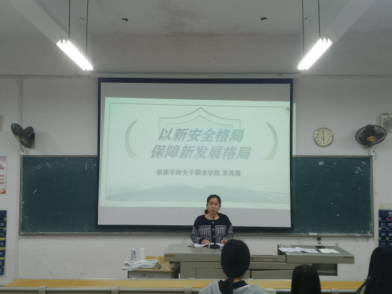 2023年11月14日晚上,学院党委副书记吴岚葭走上讲堂,为2022级早教专业1、2班学生讲授“以新安全格局保障新发展格局”为主题的形势与政策课。