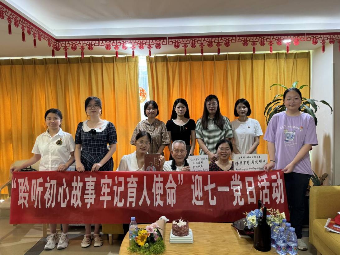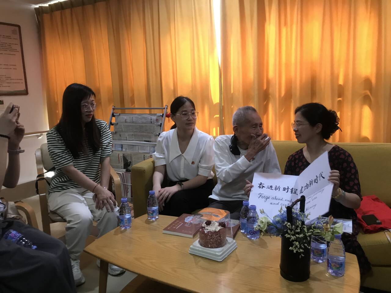 为了迎接党的生日,进一步强化党员的身份和责任意识,日前马克思主义学院党支部组织“聆听初心故事 牢记育人使命”迎七一党日活动。支部党员带领康养专业学生入党积极分子专程来到台江万颐康养中心拜访百岁老党员、“鼓岭之友”陈世明。