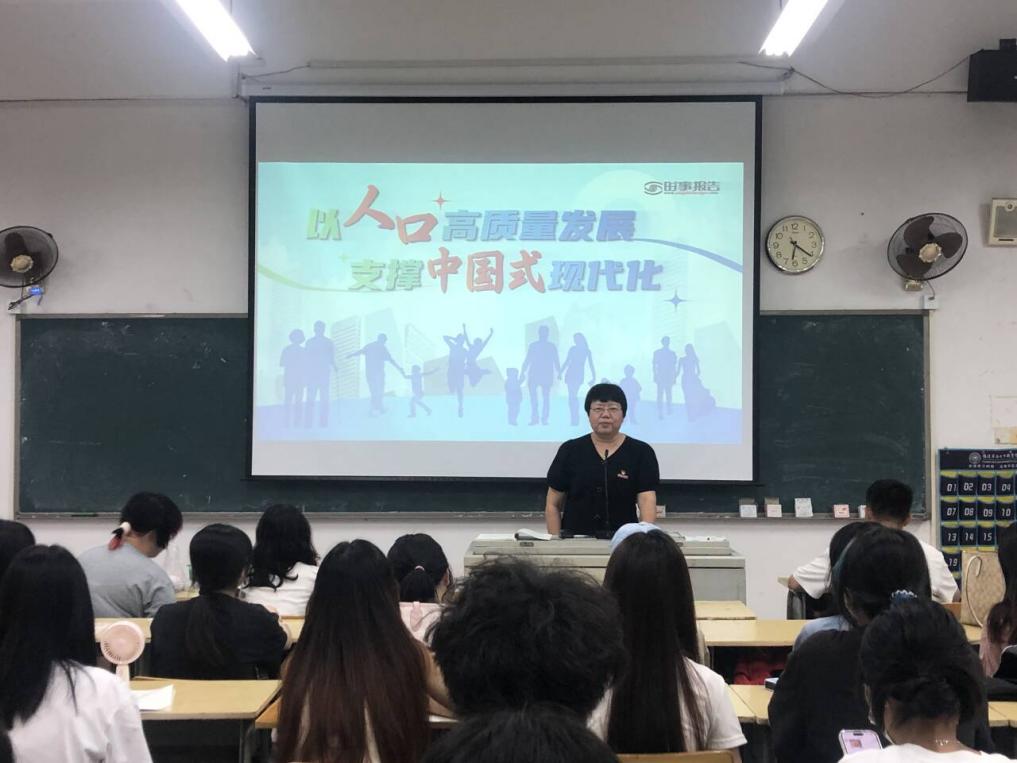 针对学生关心的 “人口负增长是否意味着发展停滞” 问题,任校长辩证分析:“人口减少虽带来劳动力供给压力,但也倒逼经济从外延扩张转向内涵发展。我国现有 14 亿人口、9 亿劳动力,接受高等教育者超 2.4 亿,人口综合红利依然显著。” 她援引数据指出,我国新增劳动力平均受教育年限达 14 年,研发人员总量稳居世界首位,这正是支撑现代化建设的核心动能。