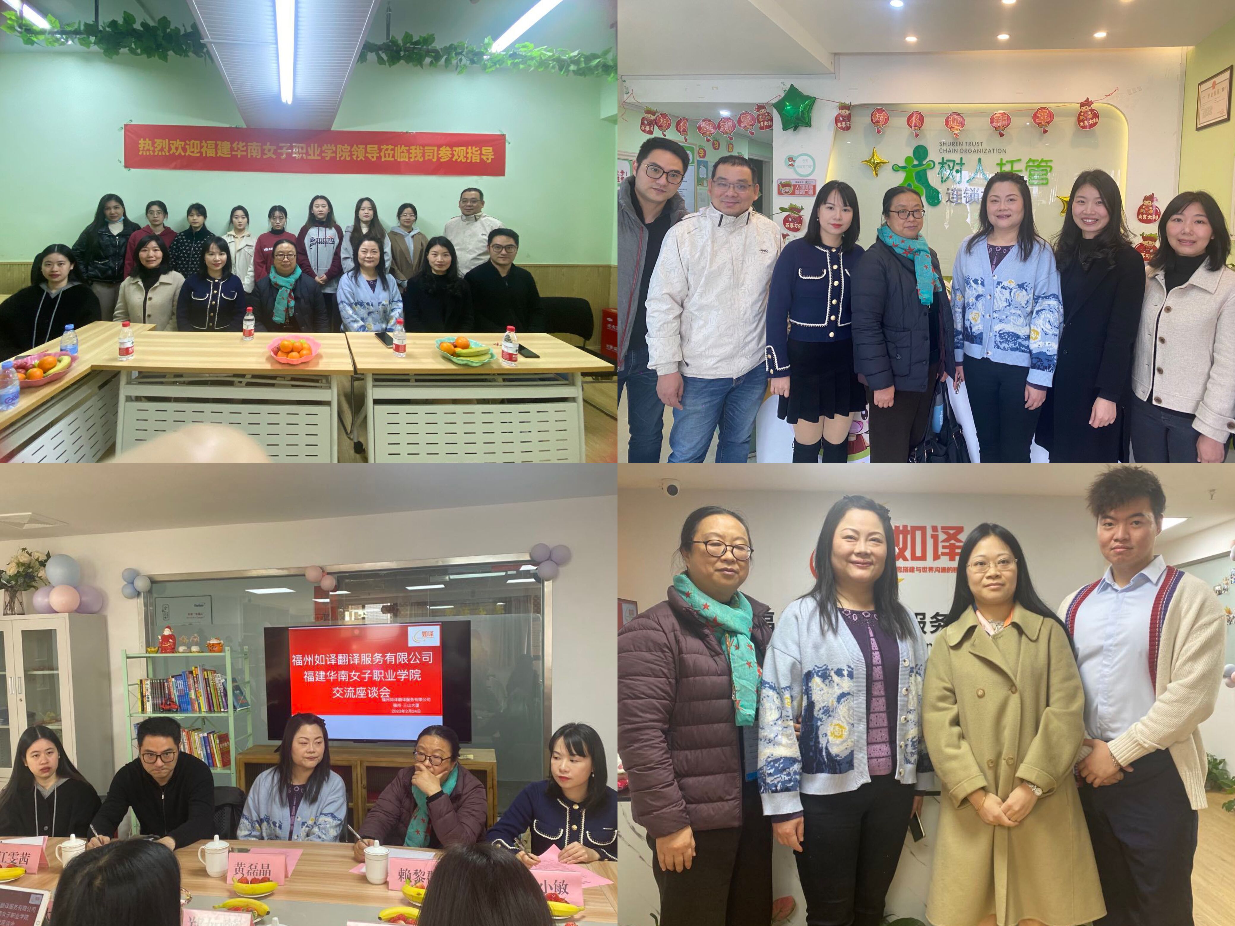 为实地了解应用英语专业毕业生实习情况,深入调研用人单位对应用英语专业人才培养的评价和建议,促进和实习单位的深度交流与合作。2023年2月24日上午,我院黄磊晶副院长、文化教育系主任赖黎群、应用英语专业主任林小敏、应用英语专业带头人叶林、招就处教师刘超平及应用英语专业辅导员江雯茜一行,先后走访了福建树人教育科技股份有限公司和福州如译翻译有限公司,对毕业生的工作实习情况进行了解和跟踪,并与企业负责人、实习学生进行深入座谈。