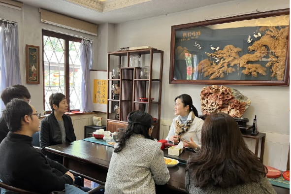 为提高美术教育专业学生对福州传统民间工艺的认识与传承、修养师范生的人文意识,拓宽学科视野。2月24日上午,福建华南女子职业学院美术教育专业教师们在文化教育系陈晴书记、专业主任刘丽莉、学科带头人翁星霞教授的带领下,来到国家级非物质文化遗产软木画第五代传承人、华南女院美术教育专业软木画工作坊导师——郭丽的软木画馆走访教研。大家在本次教研活动中就非遗软木画课程分的层次实施、教材建设、产品的社会转化、政府支持等方面进行深入的探讨,探索将非遗文化与高校美育相融合,促进义务教育阶段美育培养及非遗软木画传承创新的新方向,邀请非遗传承人进校举办讲座,开展非遗项目进校园活动,共同培育合作共建丰硕成果。